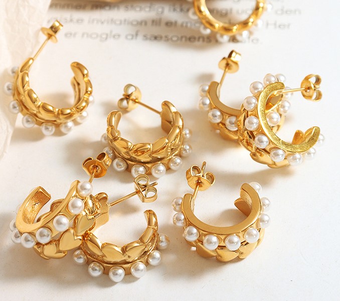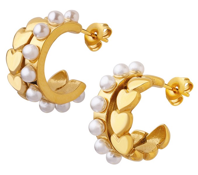Luxury Trendy Faux Pearl C Shape Heart Earring