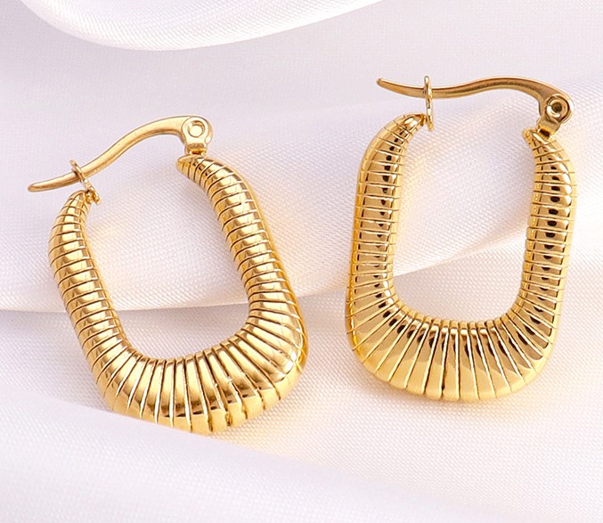 Elegant Luxury Trendy 18K Gold Threaded U-Shaped Earring