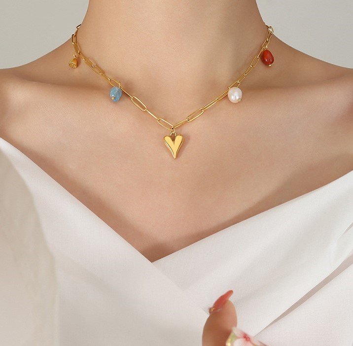 Fashion Peach Heart Lotus Pod Natural Pearl Necklace
