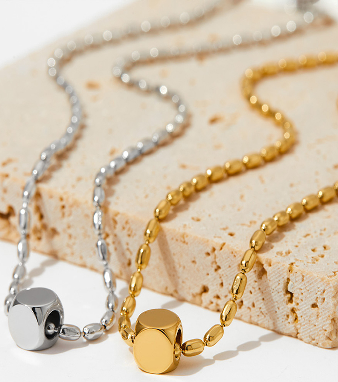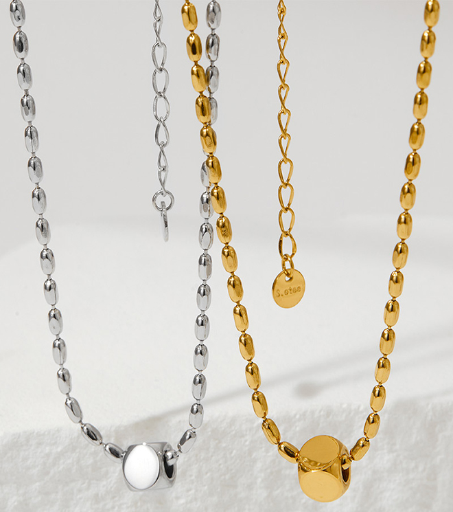 Oval Gold Bean Necklace Titanium Steel Jewelry Manufacturer Wholesale