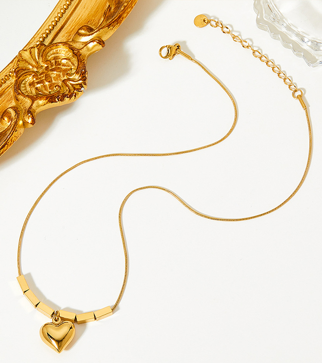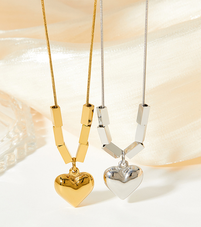 Water Proof & Non-fading Heart Square Charm Necklace Stainless Steel Jewelry