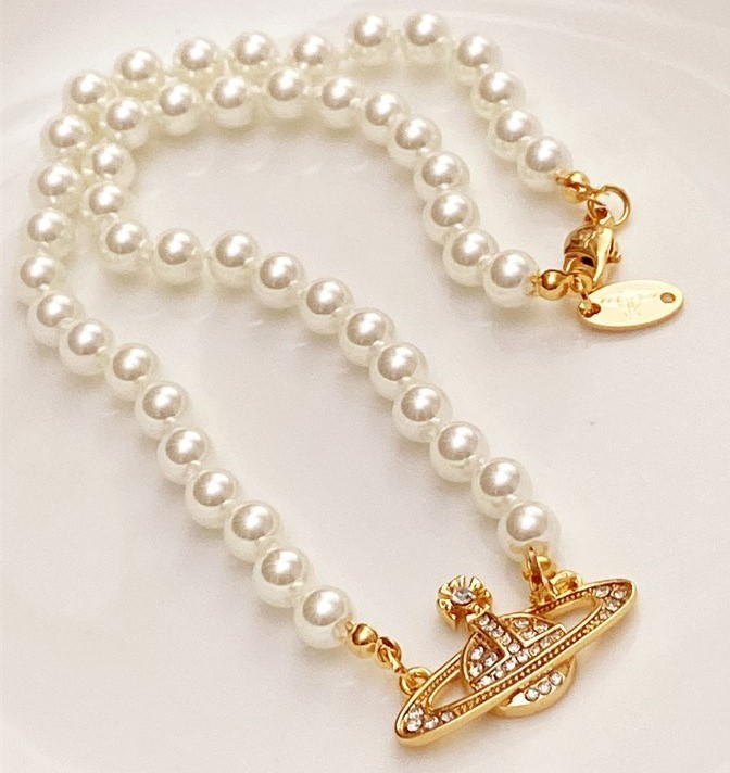 Saturn planet pearl and diamond choker necklace