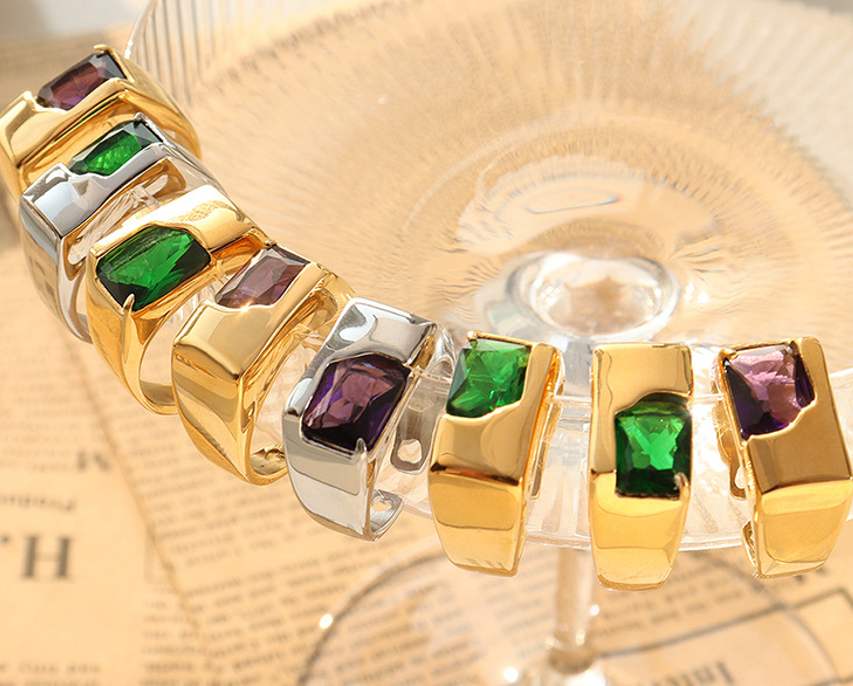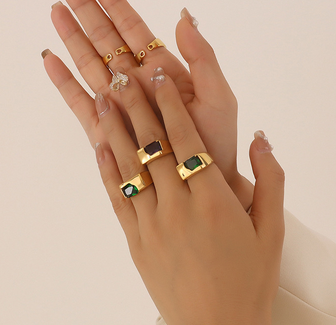 Hot-selling Zircon Inlaid Geometric Trendty Gold Ring