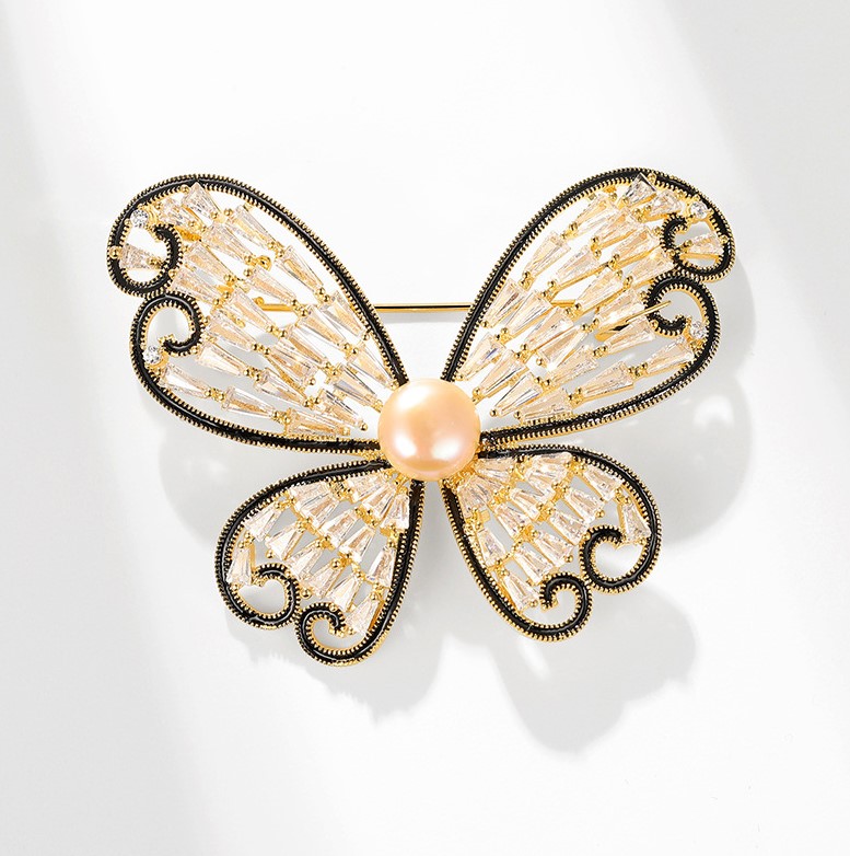 Zircon Butterfly Pearl Fashion Accessory Brooch