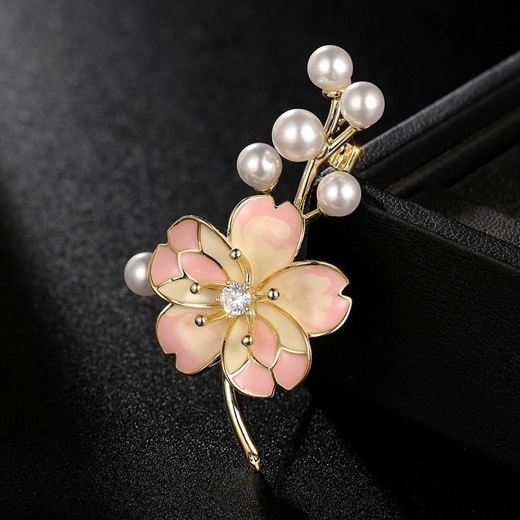 Oil Painting Peach Blossom Pink Floral Pearl Accessory Brooch