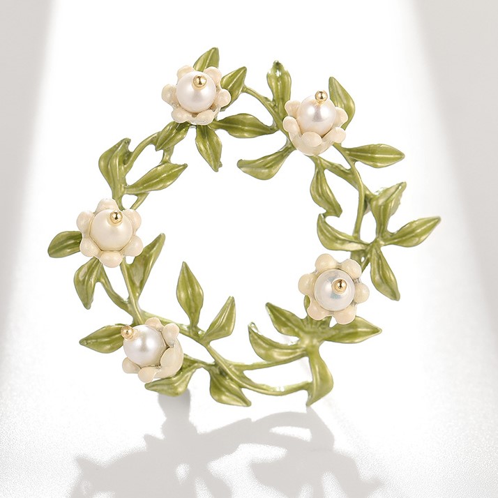 Vintage Floral Natural Freshwater Pearl Wreath Brooch