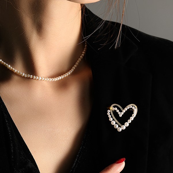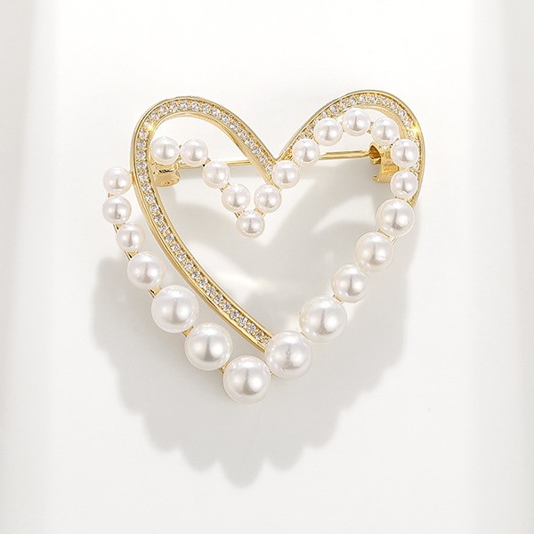 Jewelry Accessories Supplier Heart Zircon Pearl Heart Gift Brooch