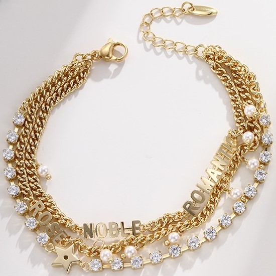 Ins Vintage Diamond Zircon Metal Letters Three-layer Bracelet Fashion Jewelry Wholesale