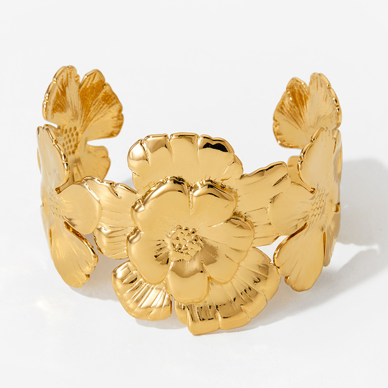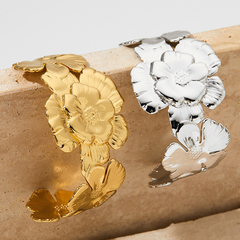 Super Wider Flower Bracelet Amazon Best-seller 18K Gold-plated Metal Bracelet Jewellery Wholesale