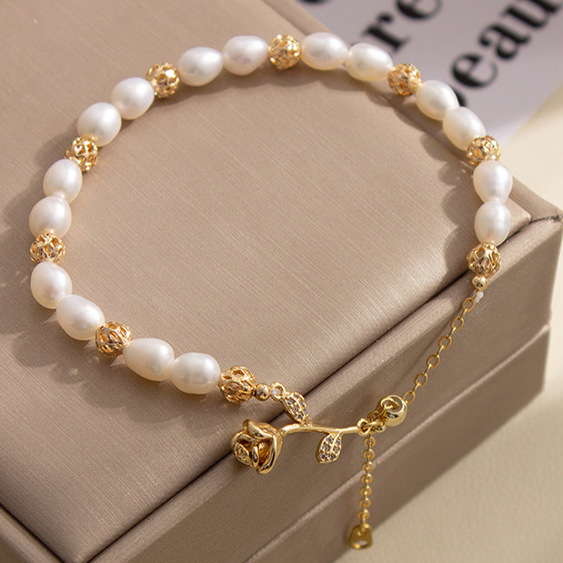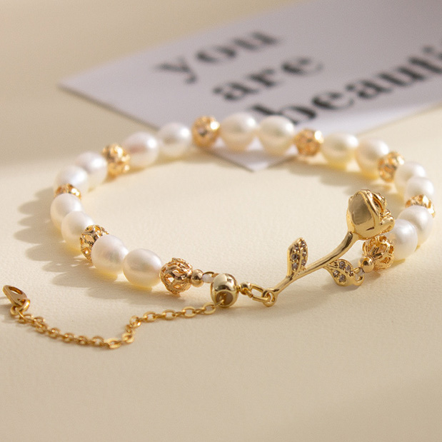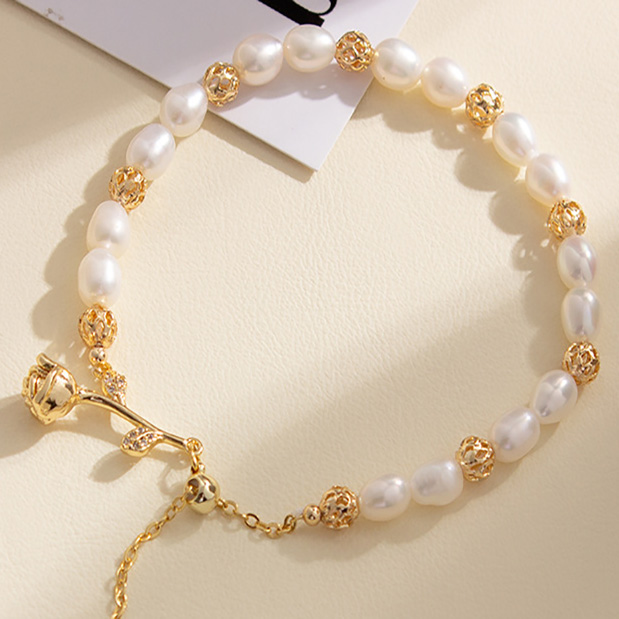 Ebay Fashion Freshwater Pearl and Rose Metal Buckle Women's Bracelet Jewelry Wholesale