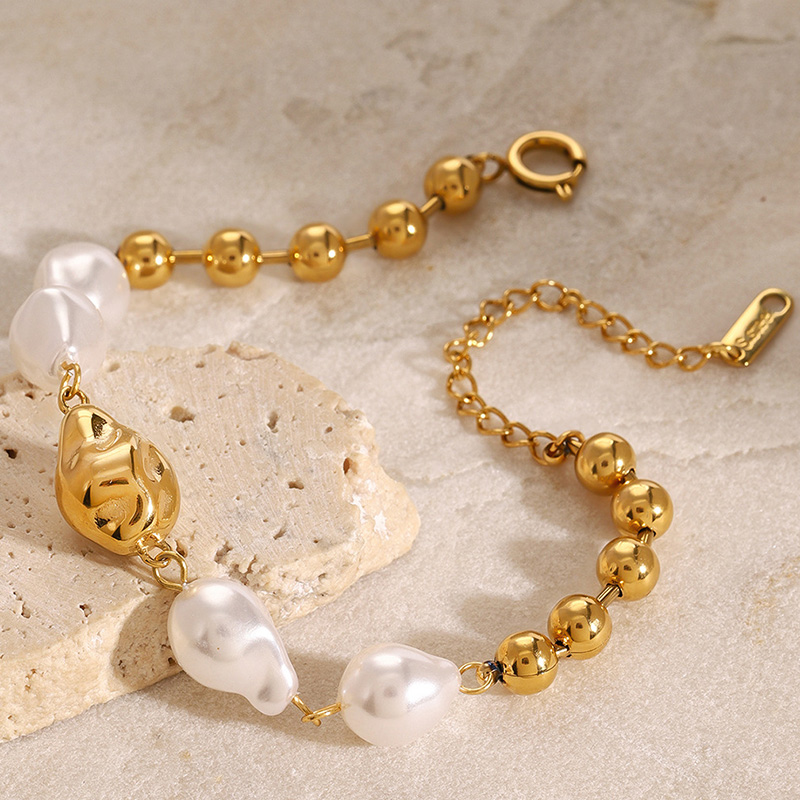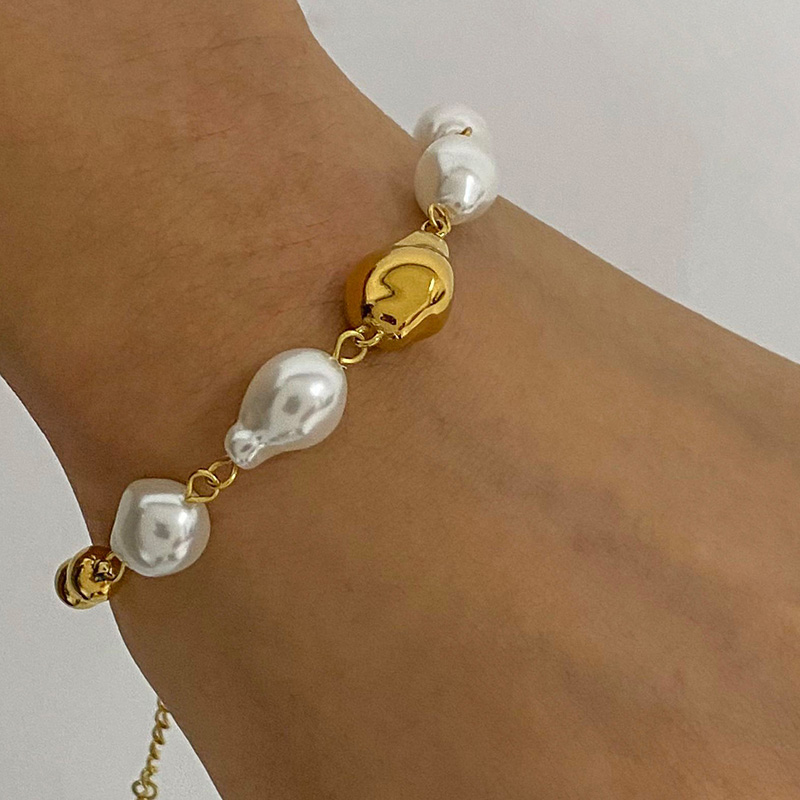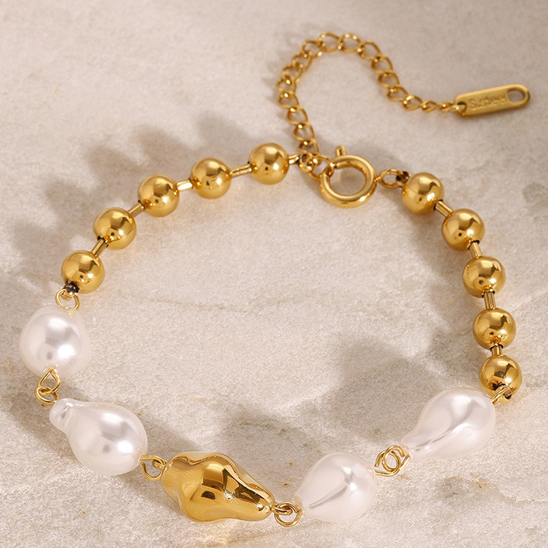 Baroque Pearl Stainless Steel Bracelet Women's Fashion Accessory