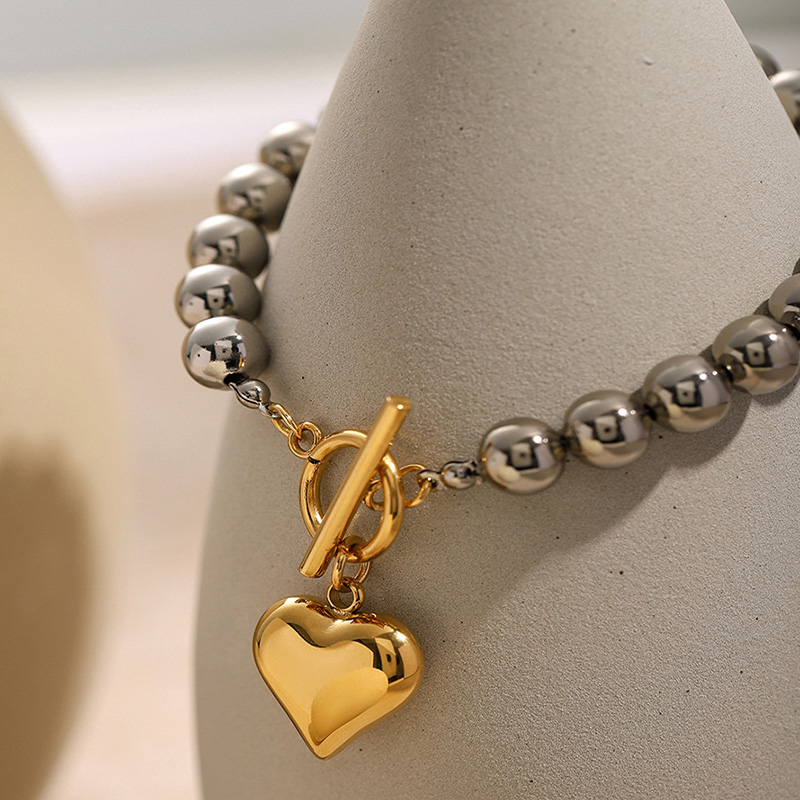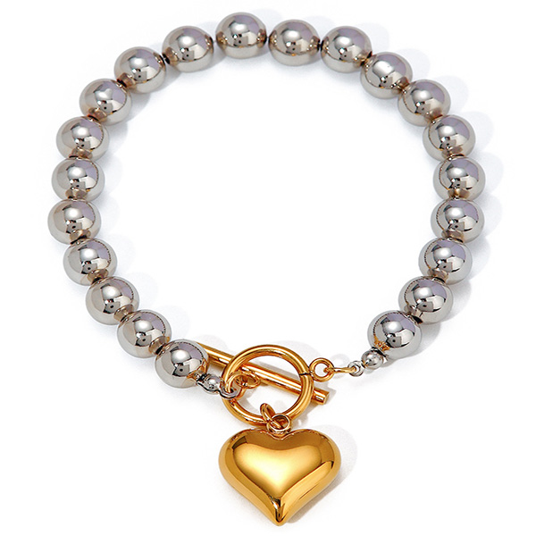 18K Gold Stainless Steel Bead Heart Pendant Luxurious Women's Bracelet Jewel Supplier