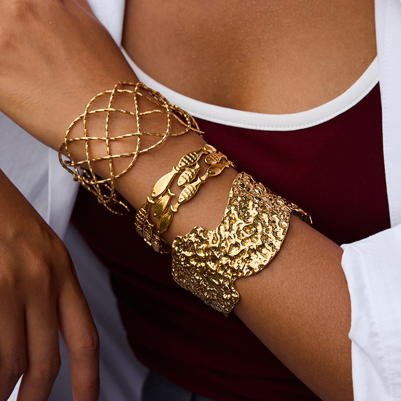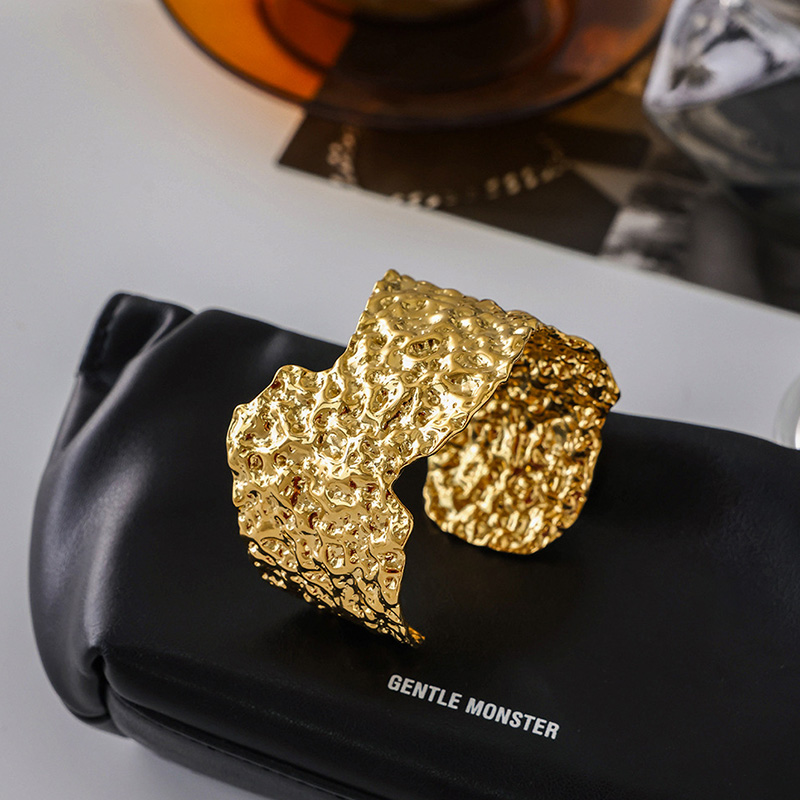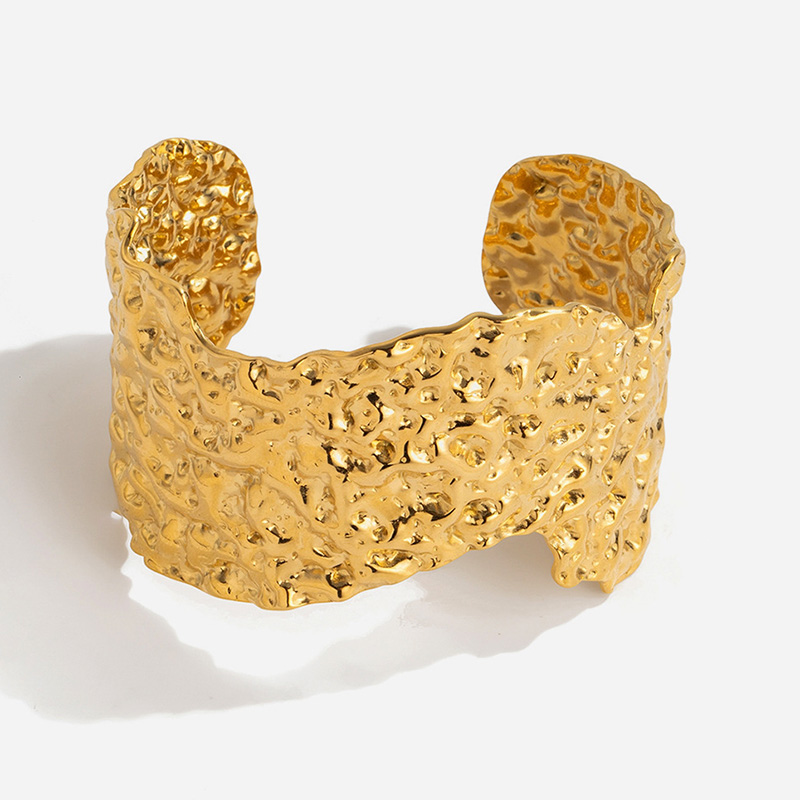 Irregular hammer pattern Best-seller wider width bracelet waterproof personalized openning stainless steel bracelet
