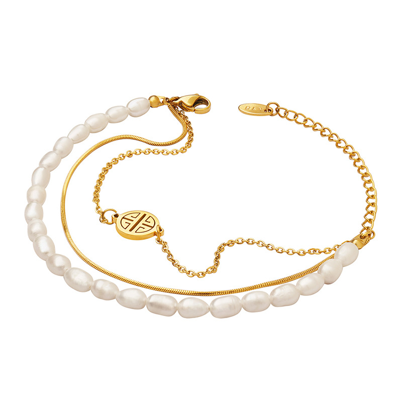 Ins New Design Hot-selling 3 Layers Natural Freshwater Pearl Charm Bracelet