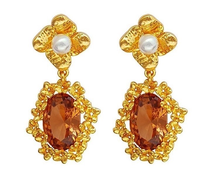 Luxury Trendy Champagne Zircon Irregular Cutout Earring