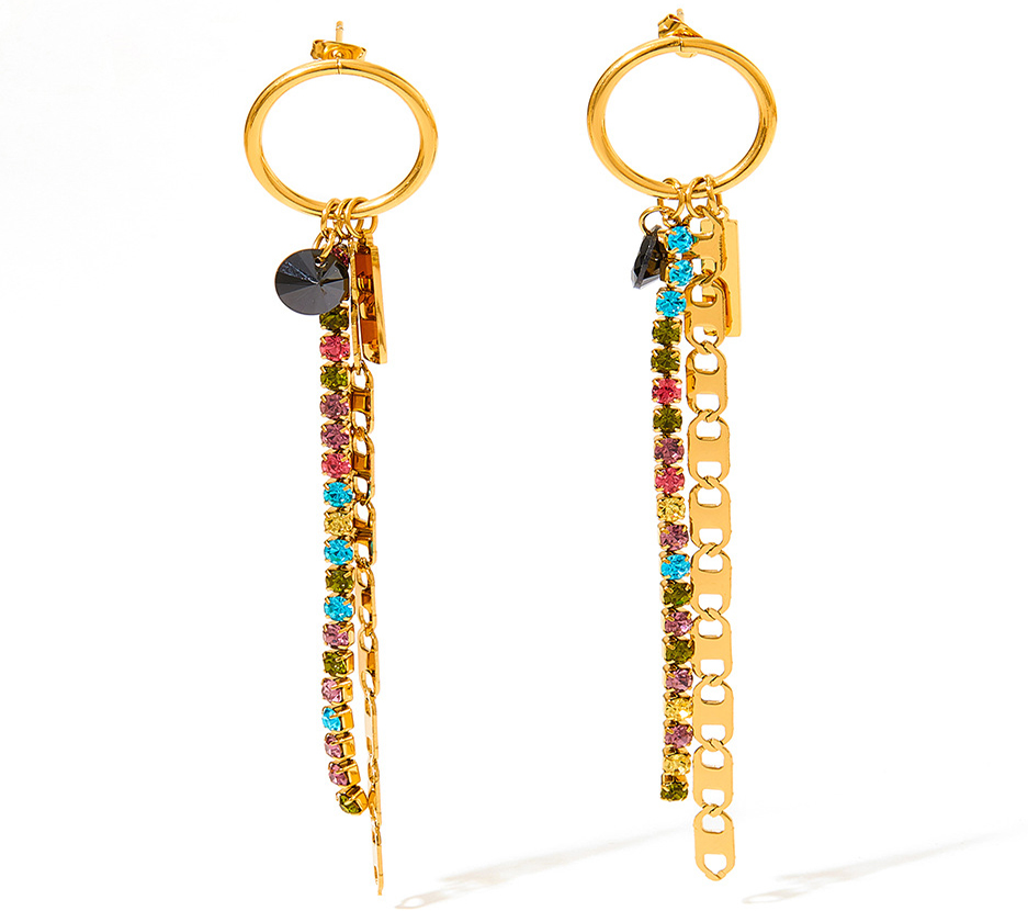 New Trendy Zircon Diamond Earrings Colorful Zircon Long Tassel Stainless Steel Earrings