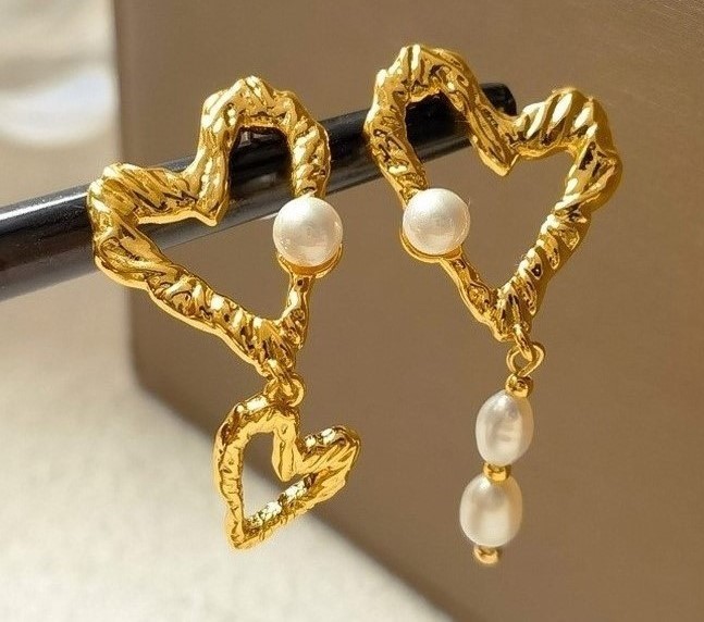 Fashion Trendy Irregular Asymmetric Heart Pearl Earring