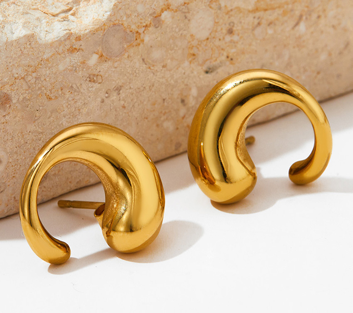 Morden Trendy Stylish & Simple Stainless Steel Gold Stud Earrings