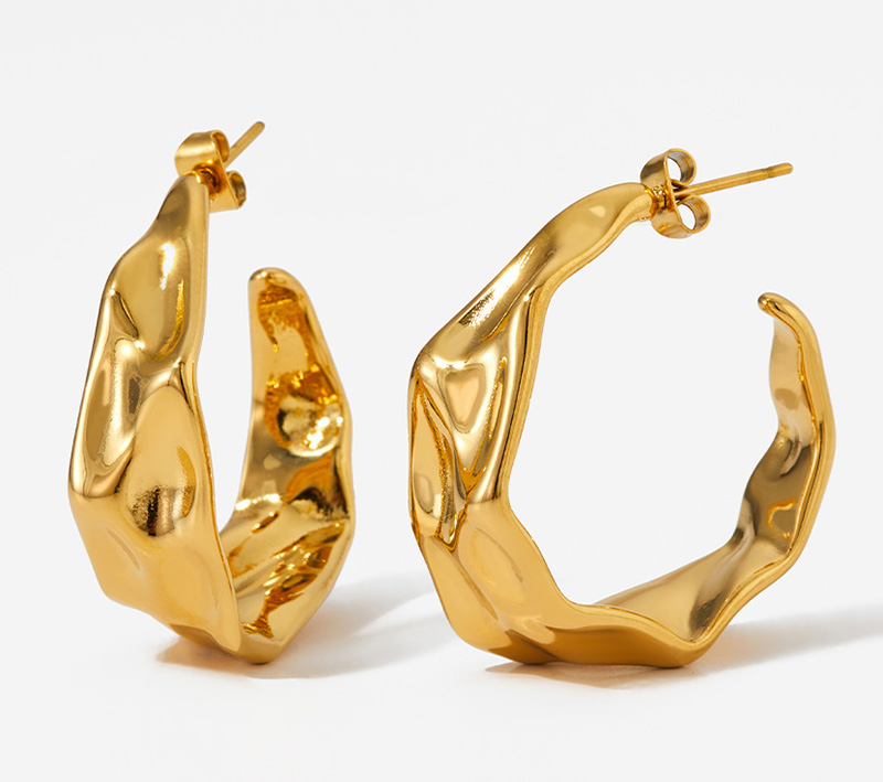 C-shaped Pleated 18k Gold Stainless Steel Women Earrings Brand Design Geometric Concave Irregular TikTok Best Seller Earrings