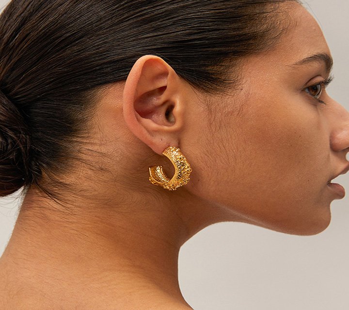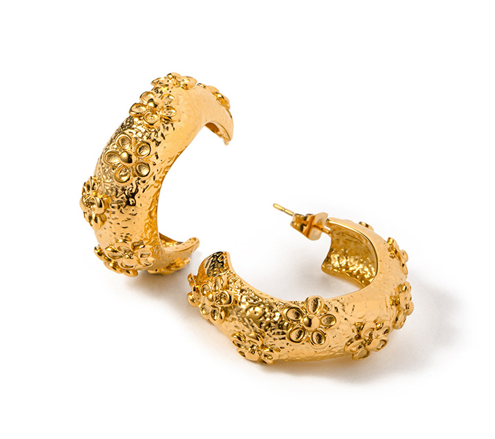 Brand Designer Style 18k Gold Stainless Steel Hammered Floral C-shaped Vintage Earrings