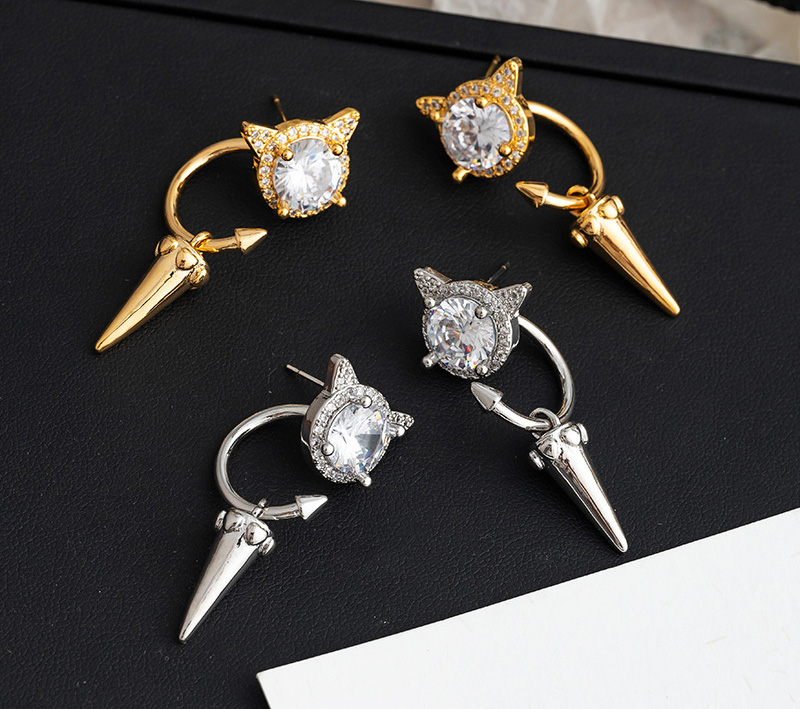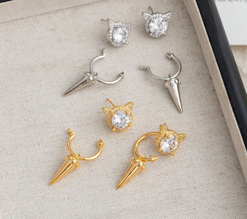 C-shaped A Demon Like Kitten Disassembled Zircon Personality TikTok Bestseller Girl Earrings