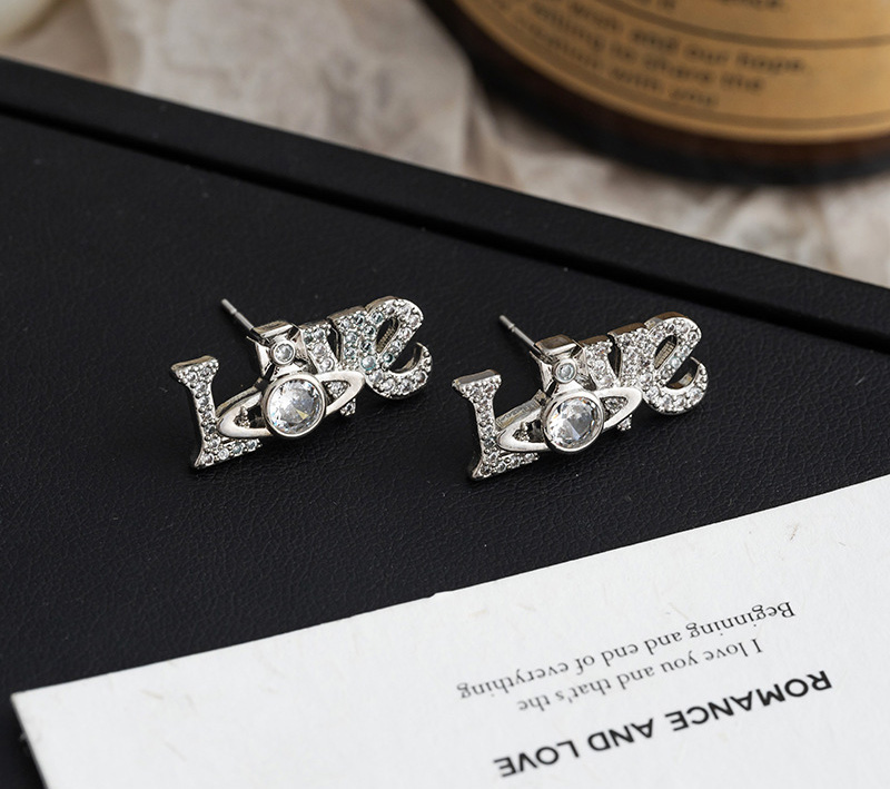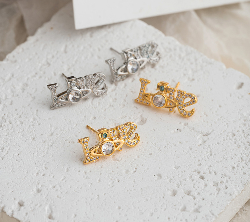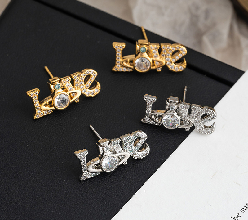 Brand Designer luxury Fashion Women Earrings Saturn Zircon LOVE Letters Diamond Antique Elegant Earrings