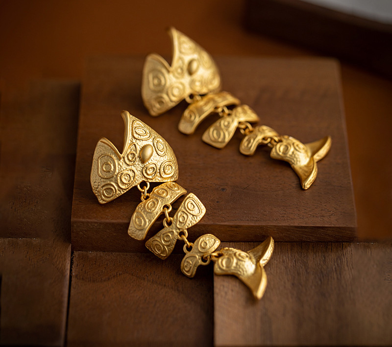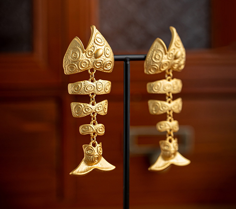 Vintage Fishbone Earrings for Women Antique Design Personalized Luxurious Gold Vintage Earrings
