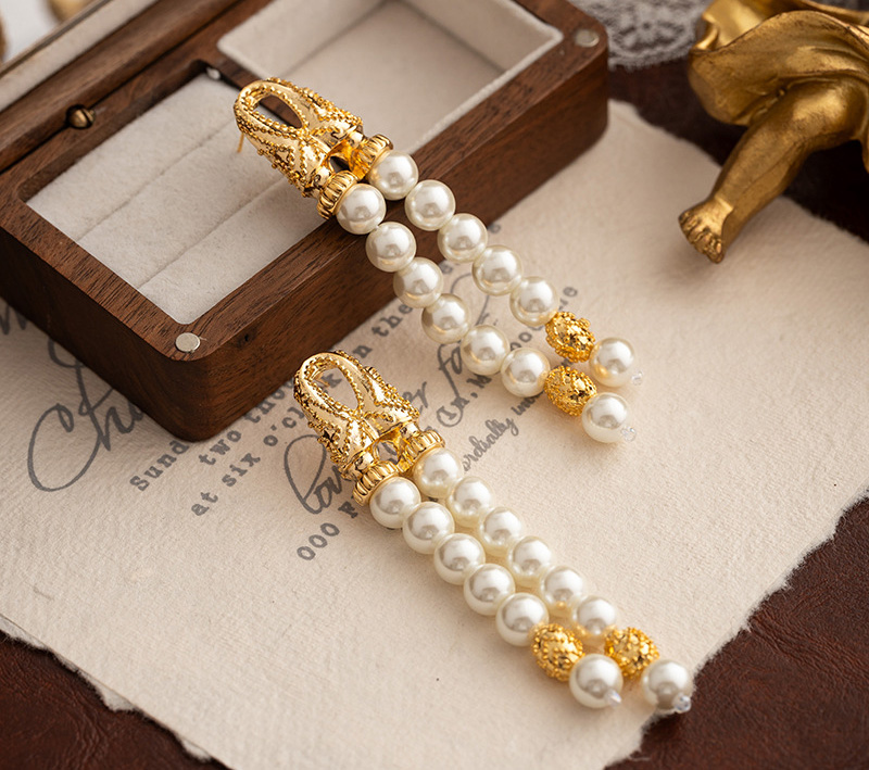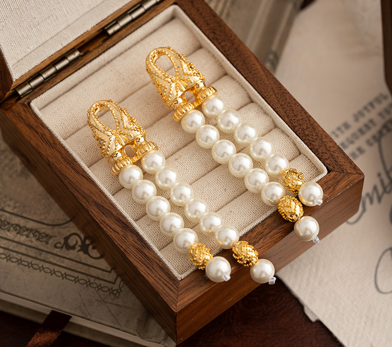 French Vintage Palace Style Earrings for Women Jewellery Antique Design Long Pearl Tassel Earrings