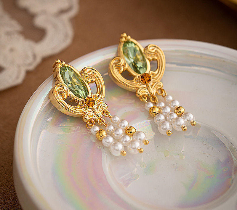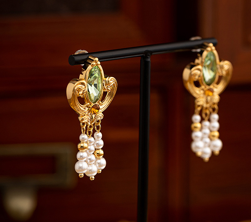 Women's Pearls Antique Palace Style Gold Earrings Vintage Design Tassel Elegant Earrings