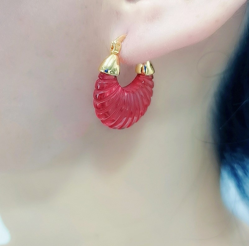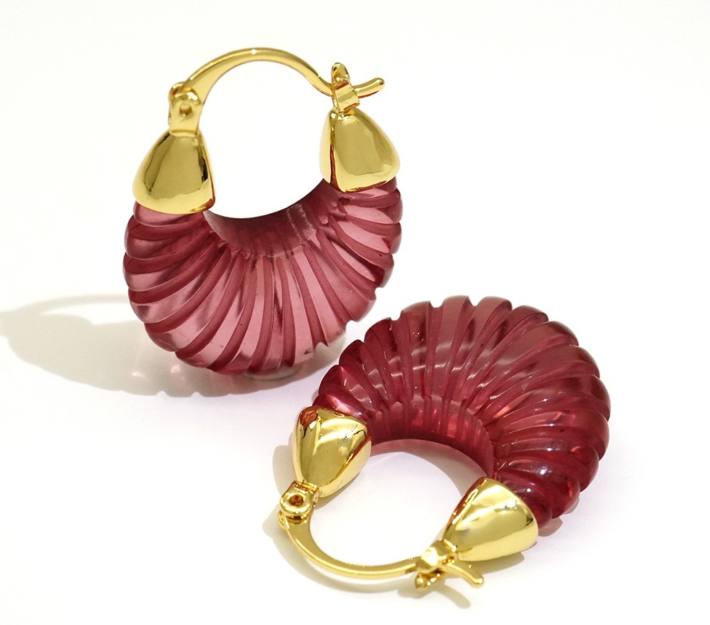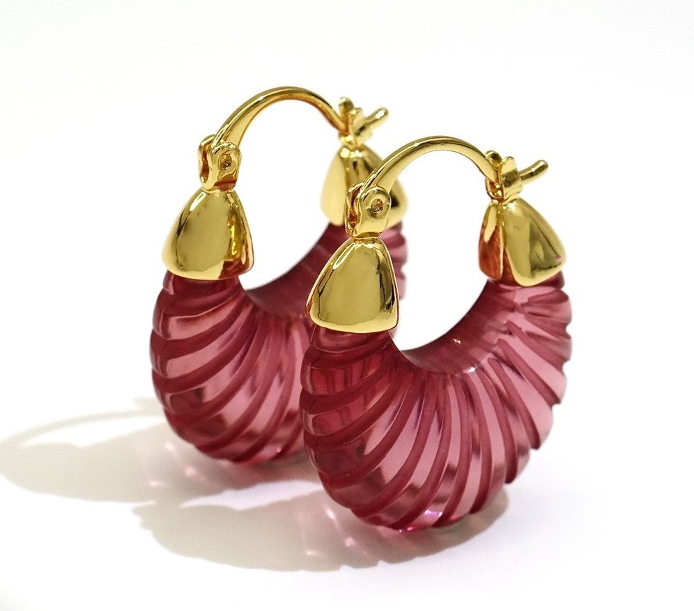 Vintage Pink Acrylic Striped C-shaped Earring
