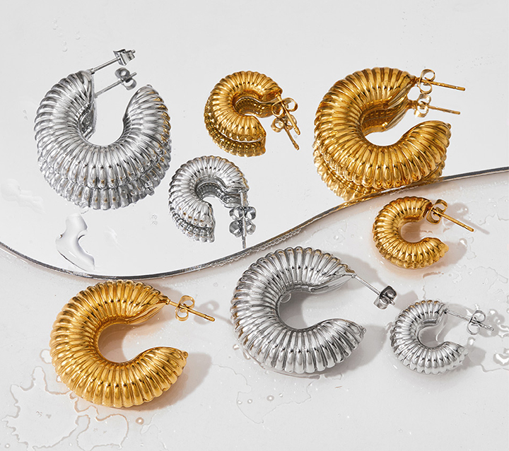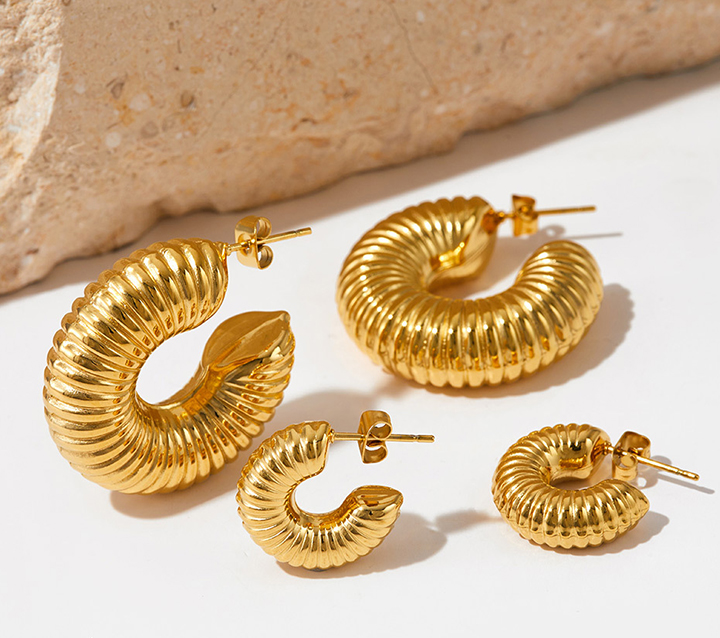 INS Twist Circle Geometric Stainless Steel Gold Earrings