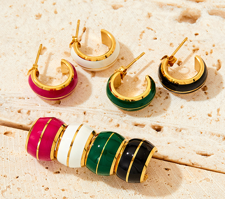 European and American Style Simple Vintage Oil Dripping Big C Earrings