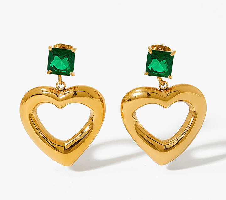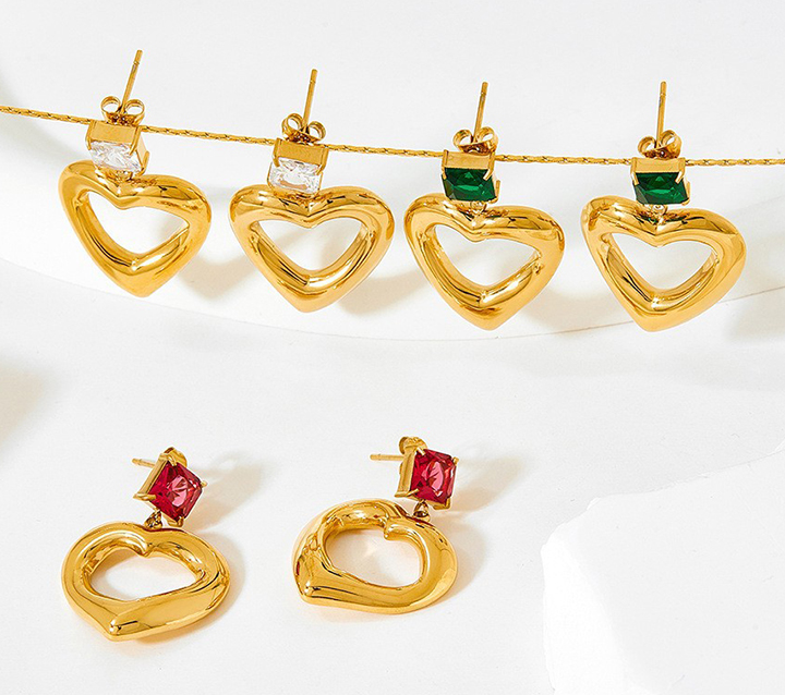 INS Style Geometric Heart Pendant Luxury Fashion Gold Earrings
