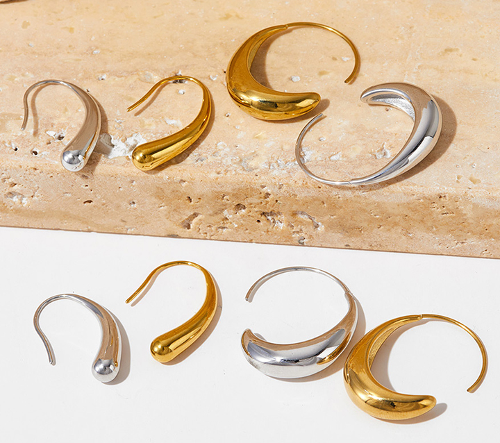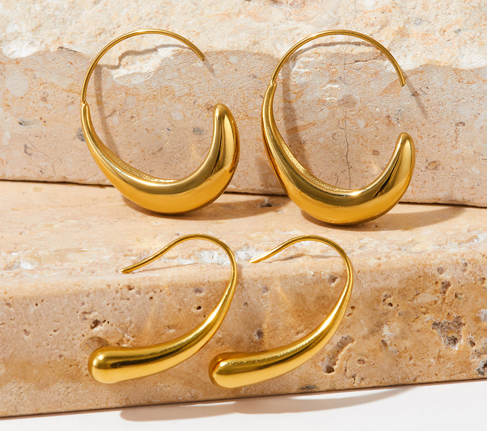 Simple Geometric C Circle Crescent Stainless Steel Gold Earrings