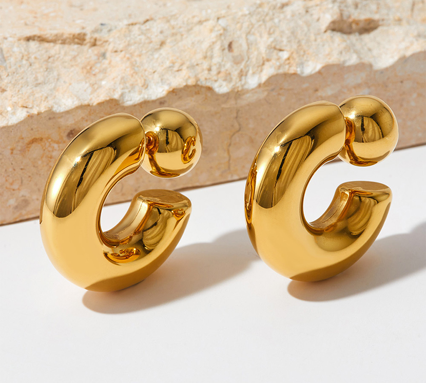 New Amazon Trendy Elegant Stainless Steel Gold C-shaped Earrings
