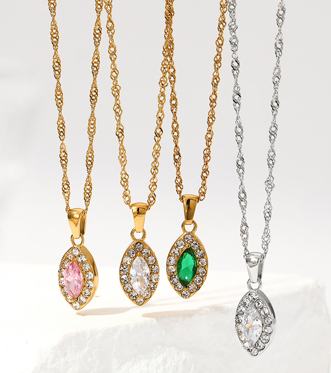 Zircon Eye Pendant Gold Trendy Luxury Necklace