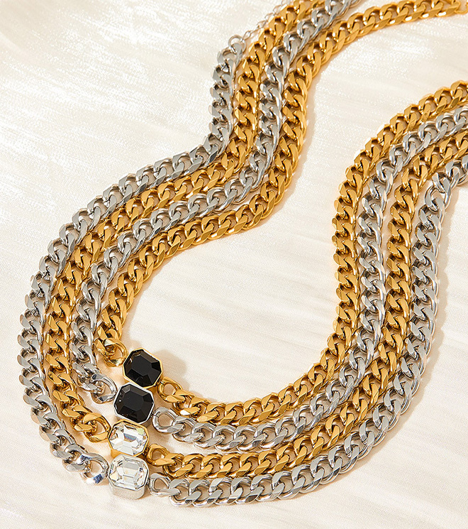 18K Gold-plated Jewelry Cuban Black Gemstone Amazon Stainless Steel Necklace for Women