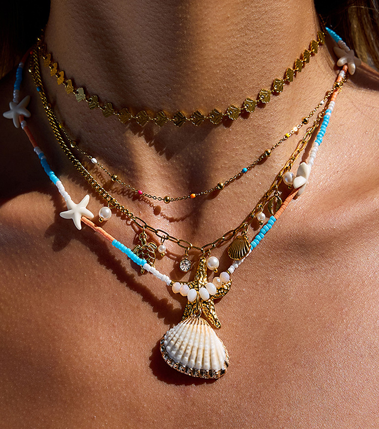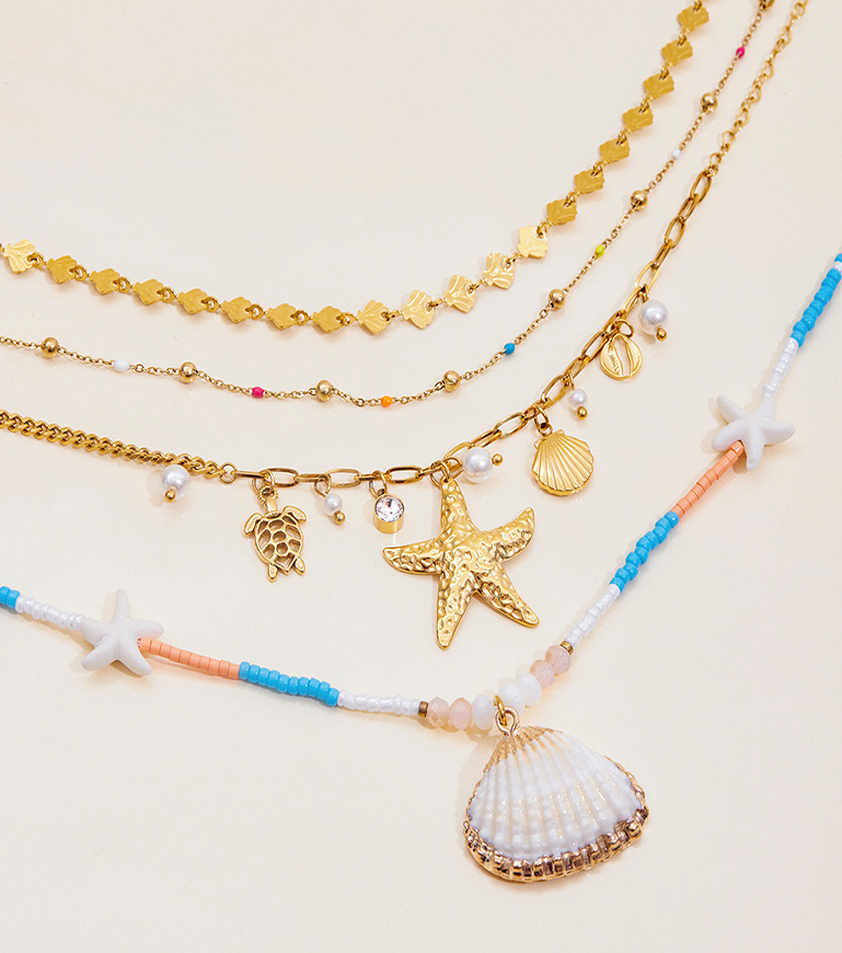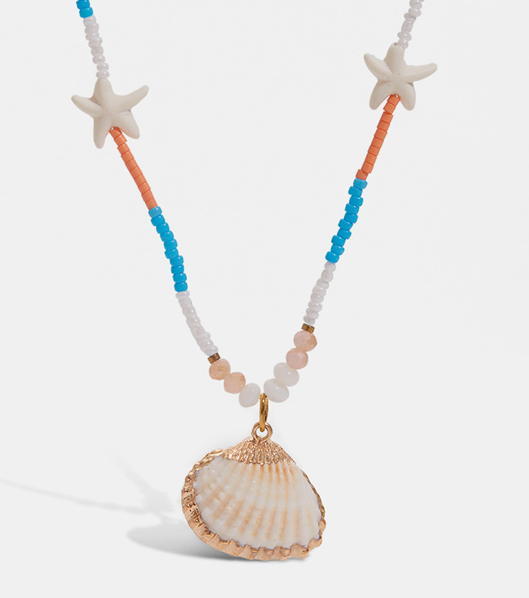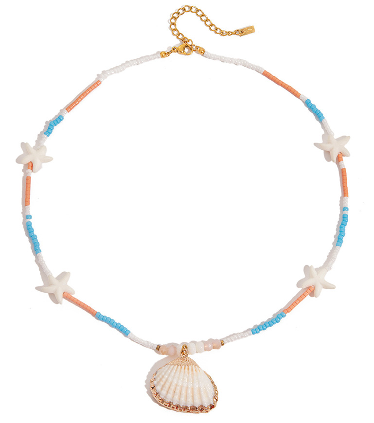 Hot selling beach vacation style rice bead shell pendant Amazon women's necklace