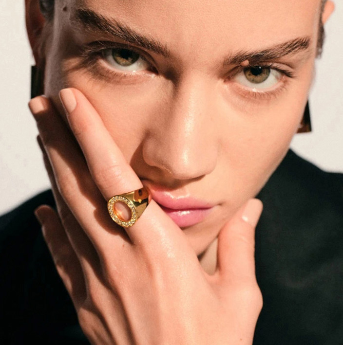 Hot-selling Zircon Inlaid Geometric Trendty Gold Ring
