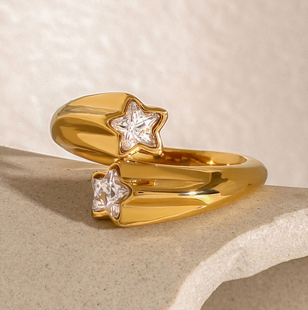 Trend Jewelry Wholesale Asymmetric Open Five-pointed Star Zircon Ring