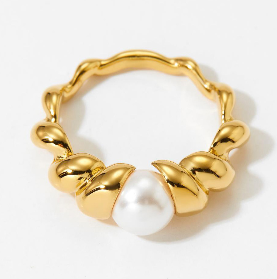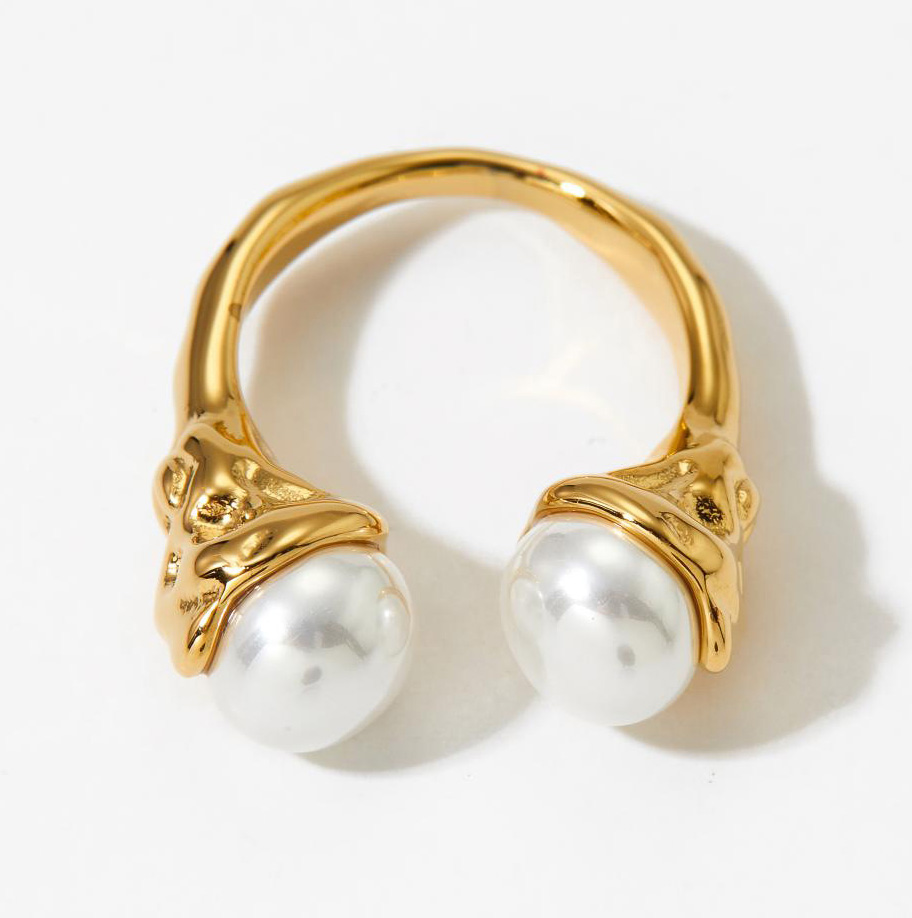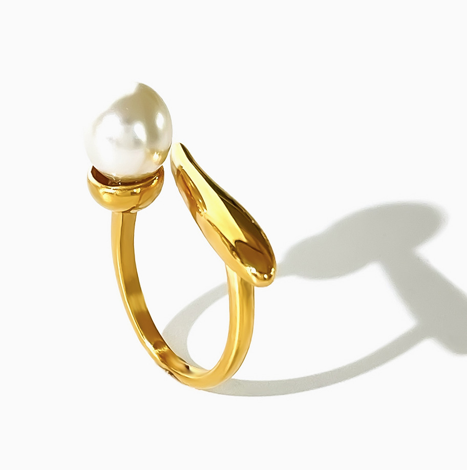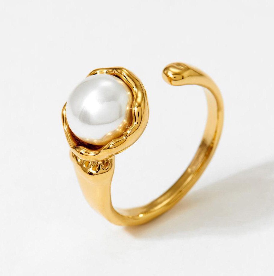 Fashion Jewelry Factory 18K Gold Ring Stainless Steel Pearl Open Women's Ring