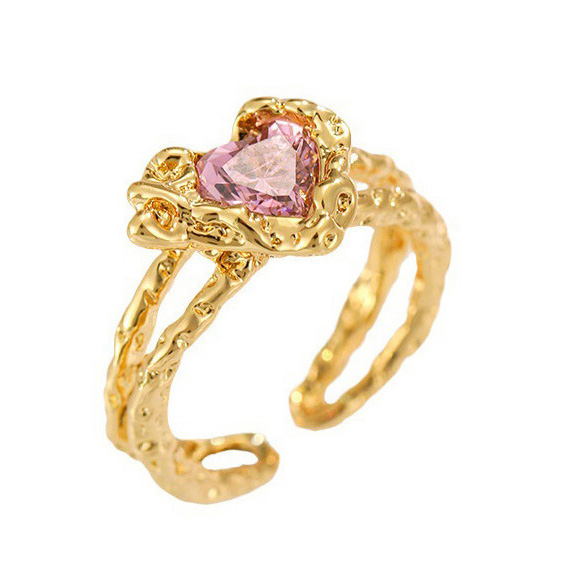 Fashion Jewelry Vintage Gold-plated Heart-shaped Zircon Open Ring