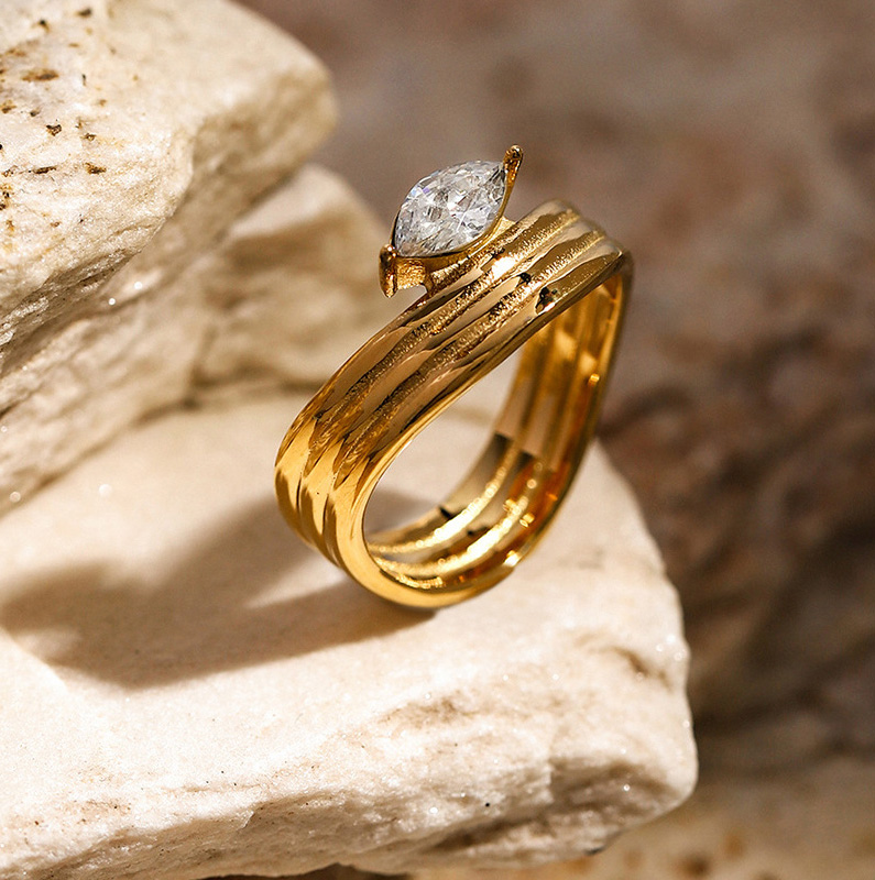 Amazon best-seller ring chinese jewelry factory manufacturer wavy shaped dimond women's luxury ring