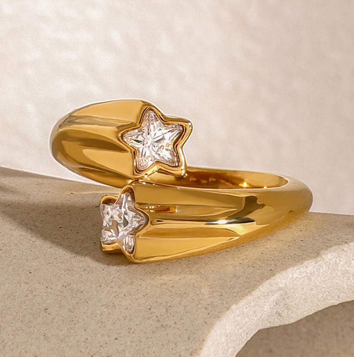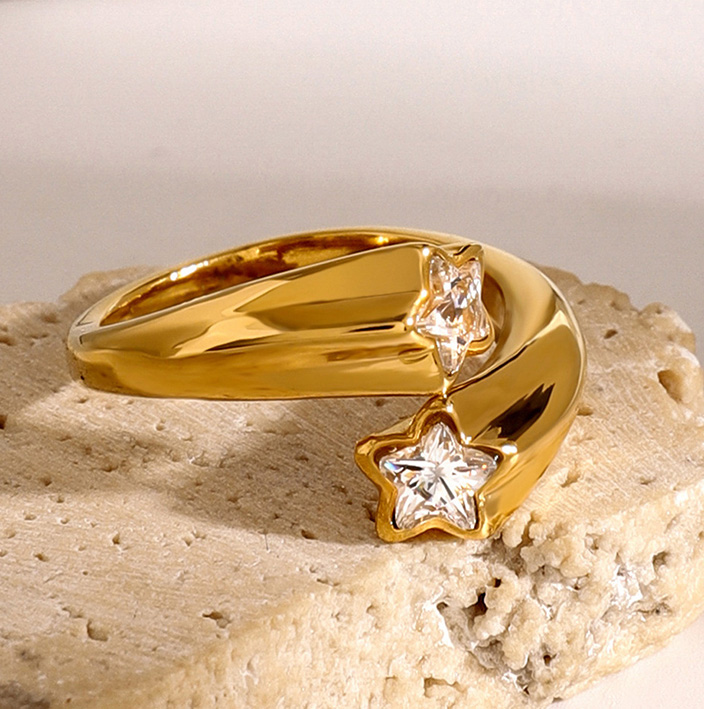 Trendy Jewelry Wholesale Asymmetric Open Five-pointed Star Zircon Ring