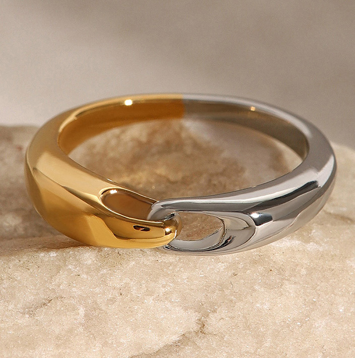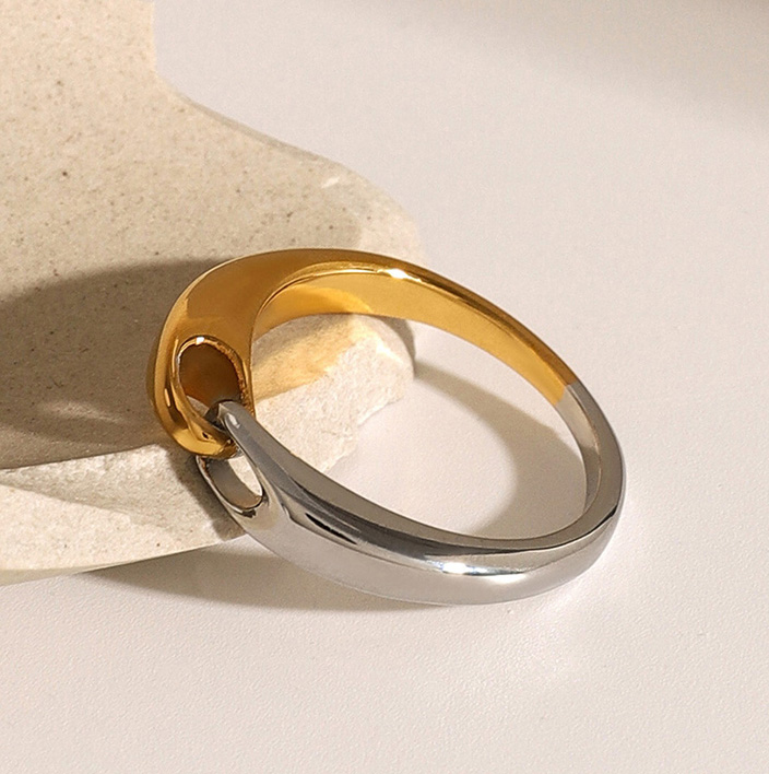 18K gold-plated stainless steel contrast ring fashion jewelry manufacture handmade ring