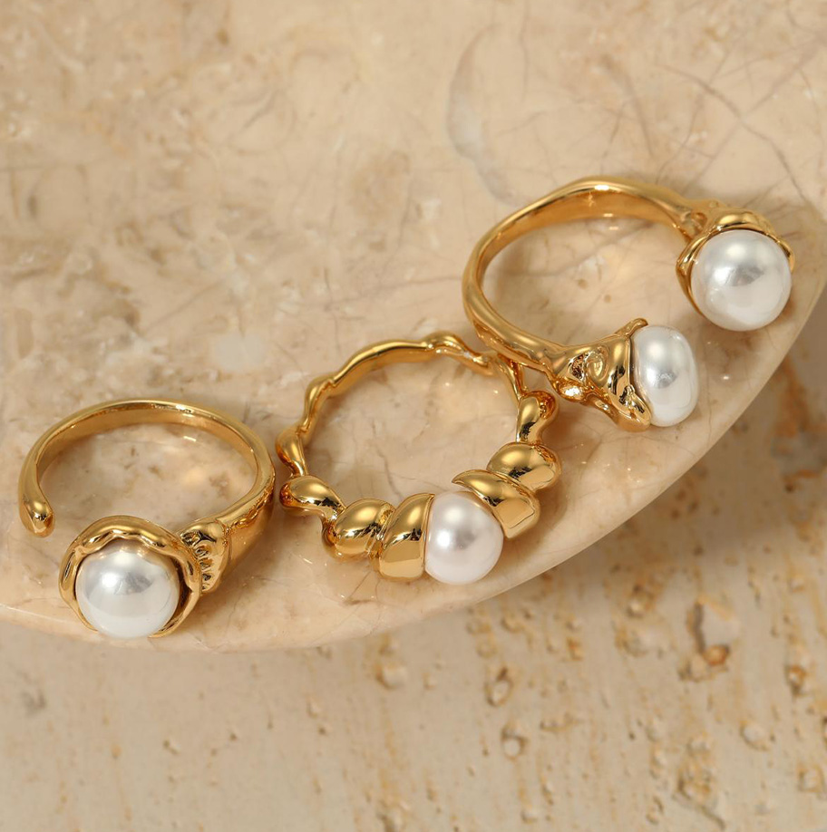 Fashion Jewelry Factory 18K Gold Ring Stainless Steel Pearl Open Women's Ring