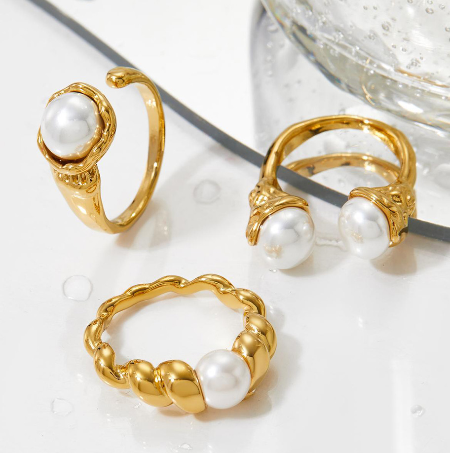 Ebay Vintage Stainless Steel Pearl Women's Fashion Ring