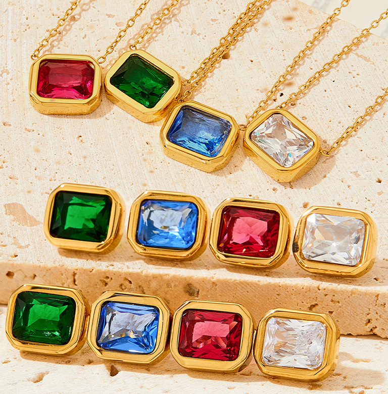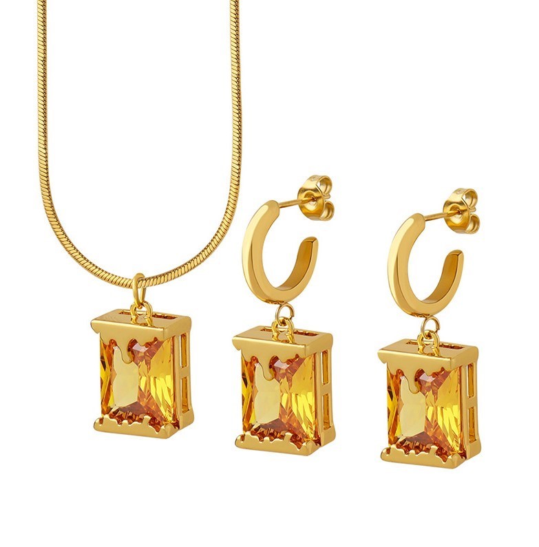 Amazon Luxury Zircon Earring Necklace Bracelet Stainless Steel Gold Plated Jewelry Set