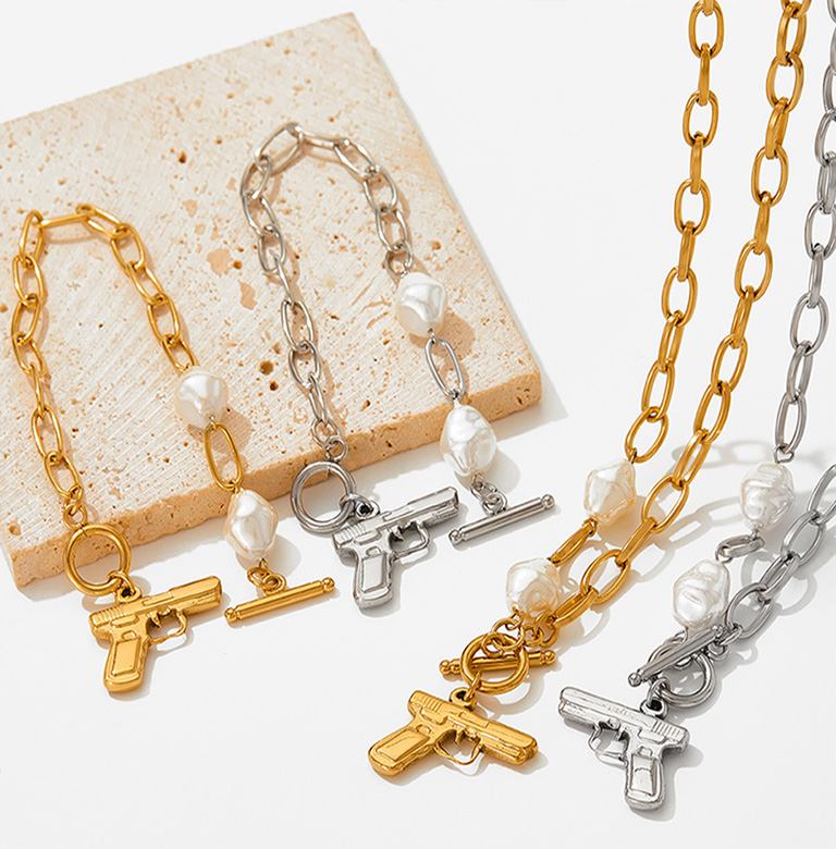 Pearl Necklace Set New Pistol Pendant Bracelet Amazon Fashion Jewelry Set