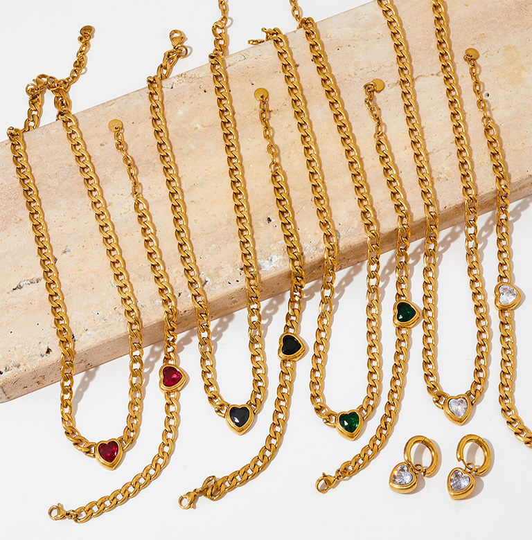 Women's Zircon Necklace Bracelet Gold-plated Stainless Steel Jewelry Set